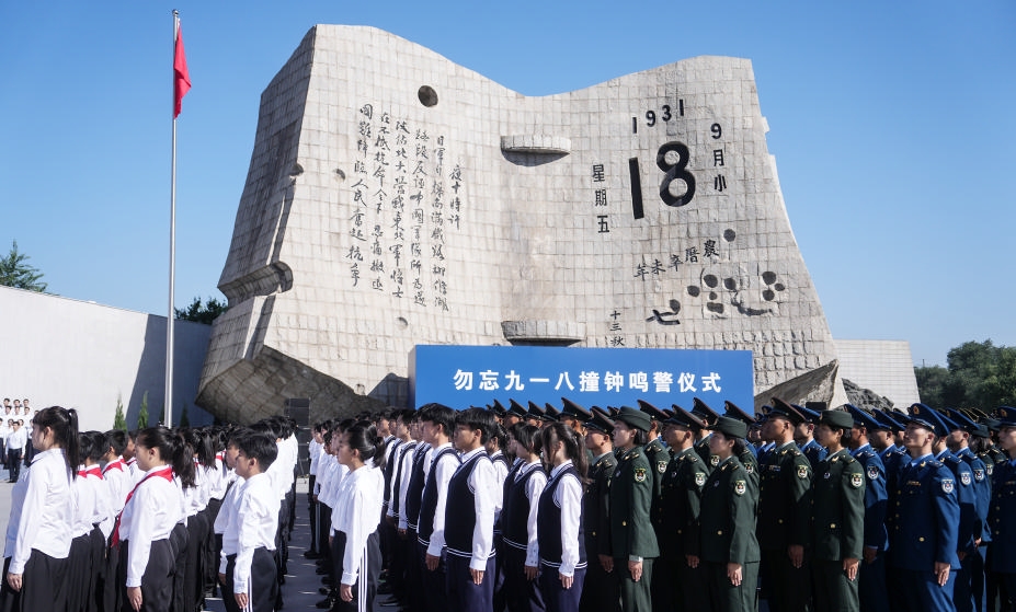 今年是九一八事变爆发94周年。9月18日上午,“勿忘九一八”撞钟鸣警仪式在沈阳“九·一八”历史博物馆残历碑广场举行。