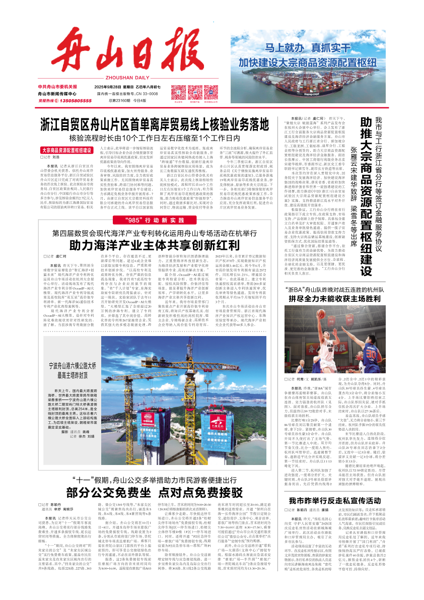 《 舟山日报 》( 2025年09月28日 第 01 版 )