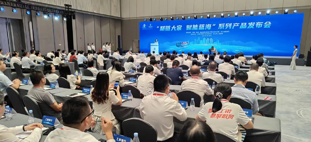 潮涌9月,相约杭城。9月27日下午,作为第四届数贸会重要活动之一,由省自贸办、省商务厅指导,中国工商银行浙江省分行与舟山市人民政府共同主办的“聚链大宗赋能蓝海”系列产品发布会在杭州大会展中心举行。会上,工行浙江省分行《大宗商品资源配置枢纽建设及海洋经济金融服务方案》正式发布,18条金融支持政策如18把钥匙,开启了大宗商品与海洋经济发展的新通道。