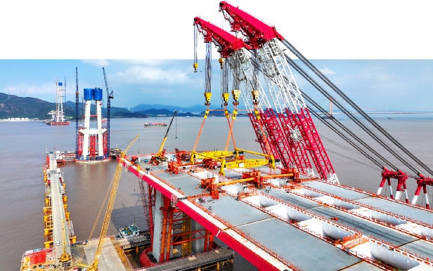 明年将进入主塔斜拉区大节段钢梁架设和上部结构安装