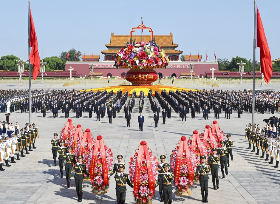 新华社北京9月30日电 铭记英烈功勋,砥砺奋斗精神。烈士纪念日向人民英雄敬献花篮仪式30日上午在北京天安门广场隆重举行。党和国家领导人习近平、李强、赵乐际、王沪宁、蔡奇、丁薛祥、李希、韩正等,同各界代表一起出席仪式。