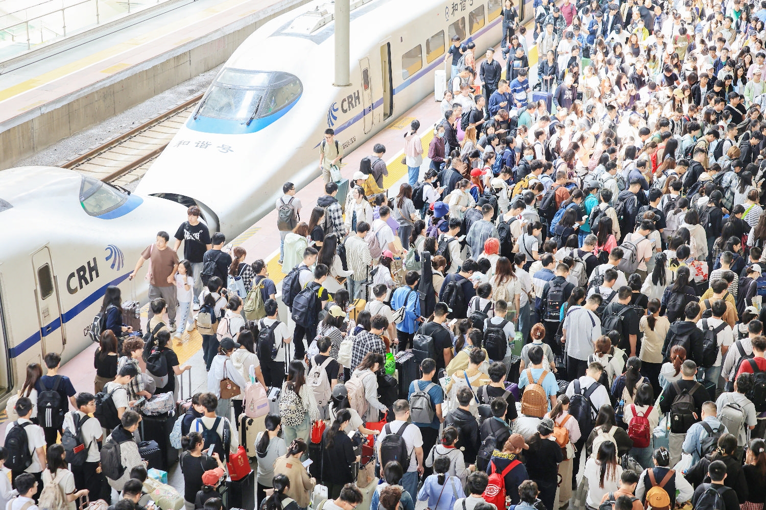 国庆中秋假期最后一天,各地迎来返程高峰。新华社 发(苏阳 摄)