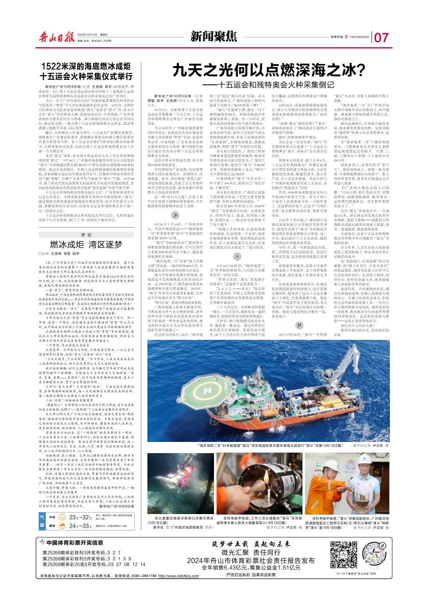 1522米深的海底燃冰成炬十五运会火种采集仪式举行