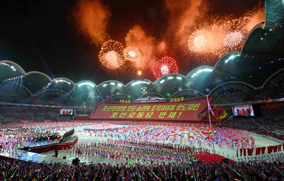 10月9日,庆祝朝鲜劳动党成立80周年大会在平壤五一体育场举行。当晚,这里还举行了大型团体操和文艺演出。