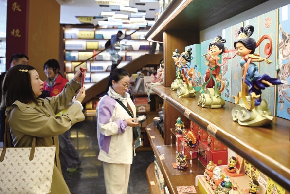 近年来,甘肃省敦煌市持续推进沉浸式文旅体验项目建设,通过改造闲置建筑,以多种方式对敦煌文化遗产进行活化利用,打造了敦煌书局、敦煌印局、敦煌无界等一批以敦煌文化为主题,集文创消费、艺术展览、互动体验、社交休闲为一体的文化新地标,吸引了大批喜爱敦煌文化与艺术的游客前来打卡游览。 新华社记者 范培珅 摄