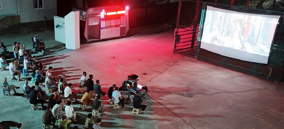 10月9日晚,普陀登步岛沙头村灯光球场,电影《百团大战》吸引上百名居民观看。连日来,普陀区数字电影流动放映队走进小岛社区等地,巡回放映多部抗战题材影片,受到群众欢迎。摄影 通讯员 刘生国