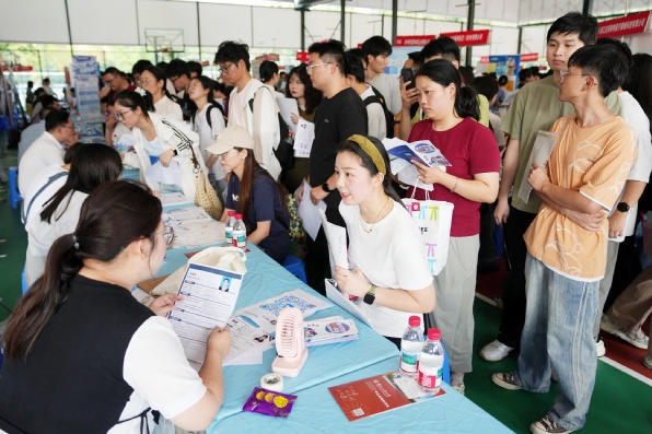 10月15日,“潮聚杭州”高校行——2025年在杭高校公益性校园招聘会浙江工业大学专场在位于杭州的浙江工业大学屏峰校区举行,200多家参会企业现场推出近4000个工作岗位,助力广大学子求职就业。