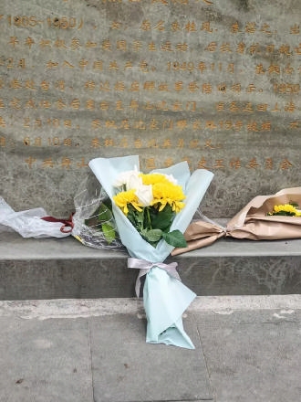 市民自发到朱枫烈士被捕处石碑前献花 图片来源“竞舟新闻”