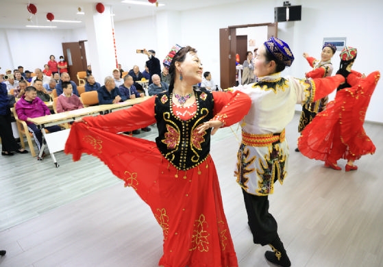昨天,定海区慈善总会义工分会戏剧演唱志愿服务队组织到福利院开展“情暖重阳送关爱”主题活动。60余名老人观看了新疆舞、情景剧等精彩文艺演出。 摄影 记者 陈永建