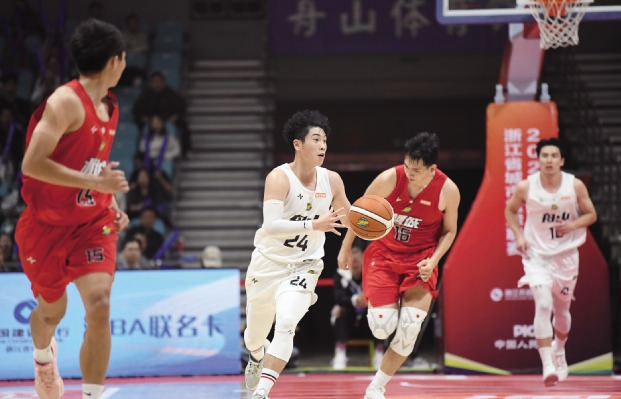 比赛一开始,舟山队取得球权后果断3分出手,抢到篮板球并造成对方犯规,两罚全中获得首分。在随后的拼抢中,舟山队抓住机会再次补篮得分,开局节奏良好。柯城队也不甘示弱,抓住舟山队的传球失误,连续投入3分球。首节结束,比分定格在17:18,舟山队落后1分。