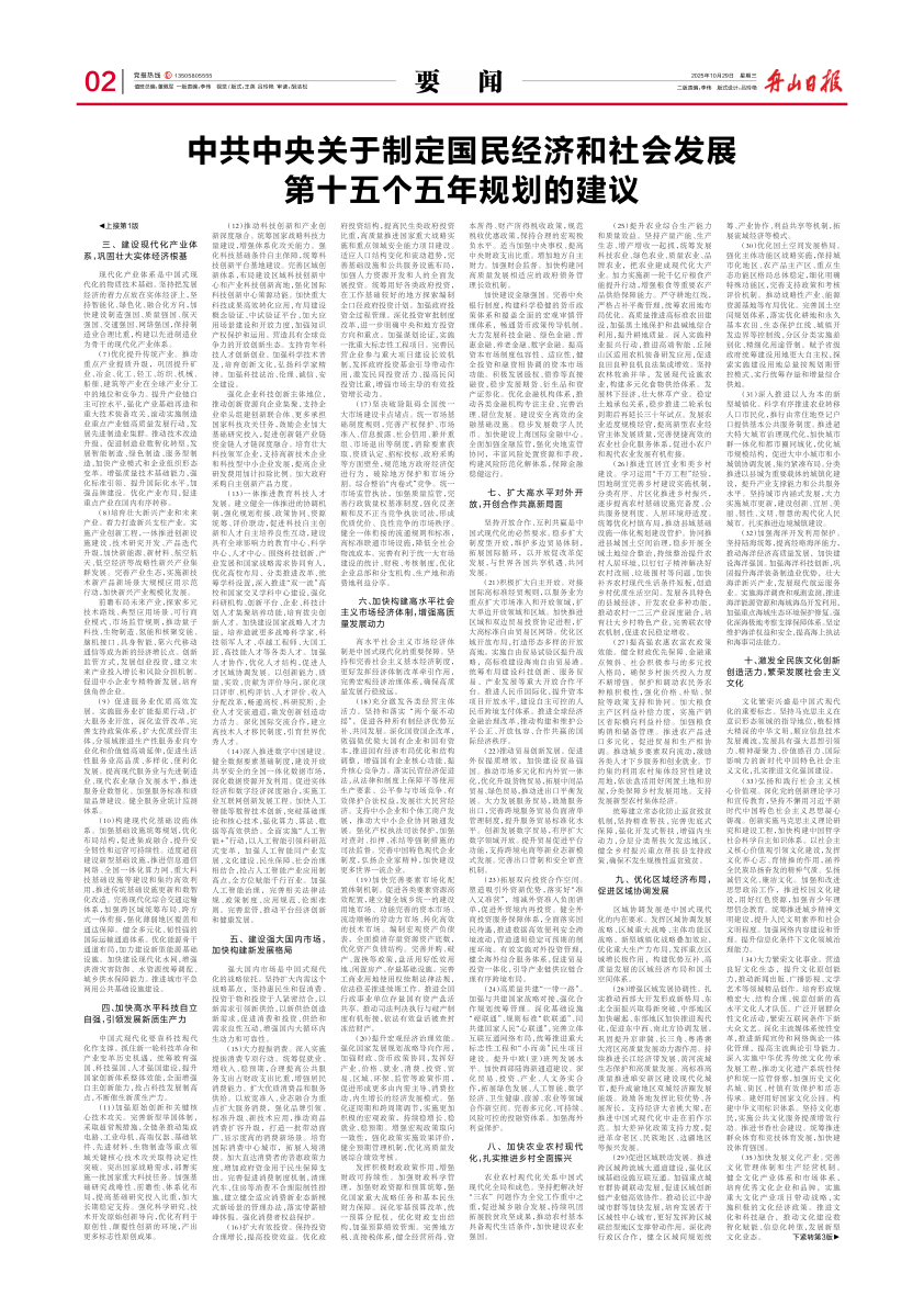 中共中央关于制定国民经济和社会发展第十五个五年规划的建议