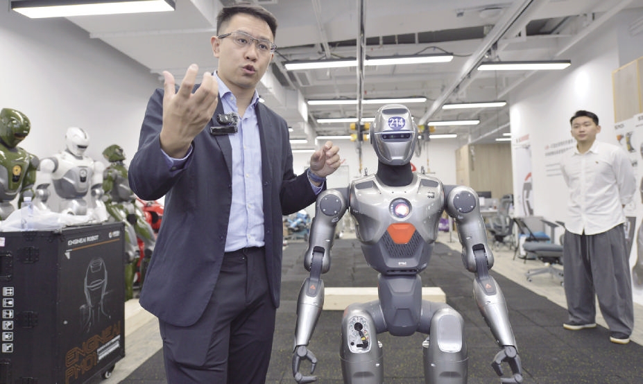 10月29日,在广东深圳,众擎机器人科技联合创始人姚淇元介绍机器人“小众” 新华社记者 刘力航 摄