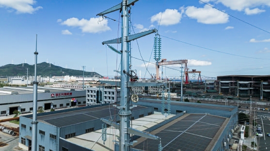 该工程线路总长1.328公里,共新建角钢塔1基、钢管杆9基。目前,全部铁塔组立和导线展放工作已顺利完成(见图),预计11月7日可实现全线贯通。作为舟山电网侧储能项目的关键配套工程,定海储能110千伏送出工程建成后将实行“夜间充电、白天放电”的运行模式,有效提升区域电网调峰能力,为构建新型电力系统、推动能源绿色转型提供有力支撑。
