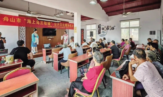 舟山市“海上乌兰牧骑”公共文化服务基层,舟山青年越剧团在岱山县衢山岛马足村演出