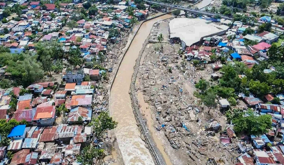 这是11月6日在菲律宾宿务省航拍的受灾现场。