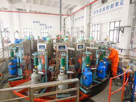 位于新城孙家岙的舟山蓝焰LPG灌装站,配有8台50立方米的LPG卧式储罐,储罐总容积400立方米,日最大灌装量为30吨。今年2月,该站首次采用液化气自动灌装设备代替传统人工操作,为百姓提供更加优质、高效、安全的用气服务。