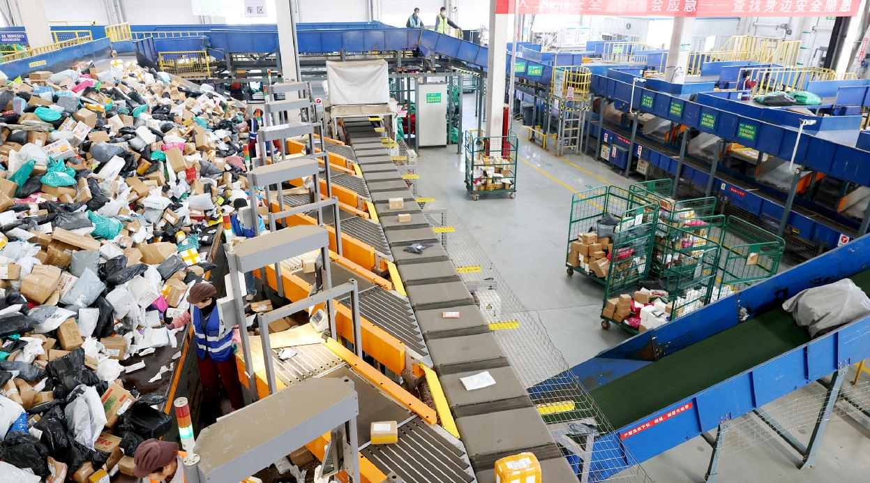 11月10日,工作人员在中国邮政集团有限公司山东枣庄市分公司寄递事业部网路运营中心分拣快递。“双十一”来临,各地电商和快递企业工作人员忙着销售、发货,一派繁忙景象。 新华社 发(孙中喆 摄)