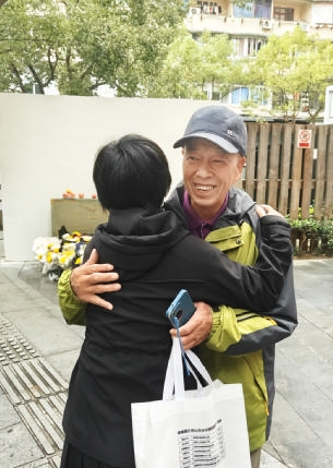昨天上午10时30分许,顾柳松、顾赫男父子在“朱枫烈士被捕处”纪念碑迎来了朱容瑢。双方一见如故,格外亲切。