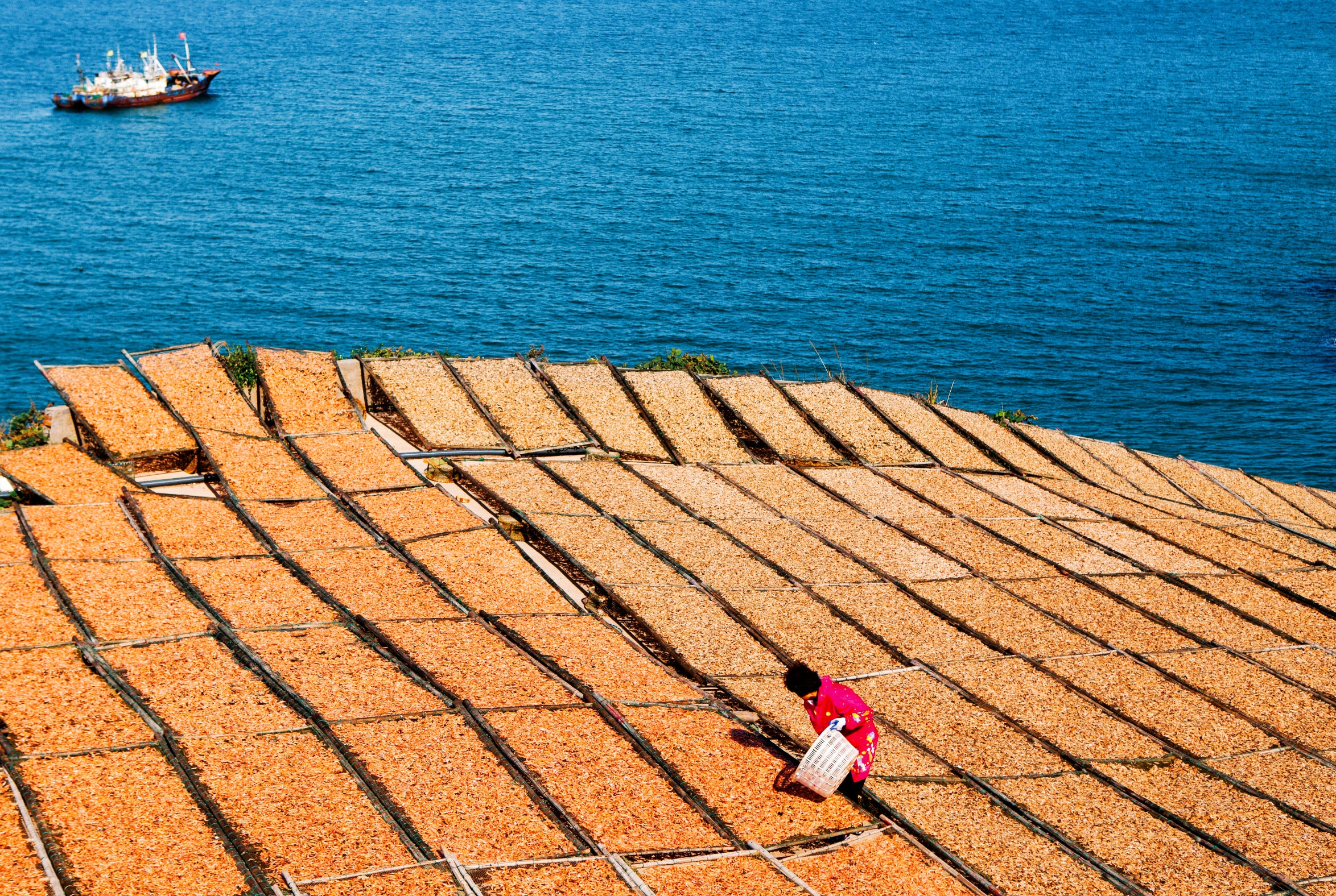 嵊泗县嵊山岛,秋晒在海边 图/包仁泉