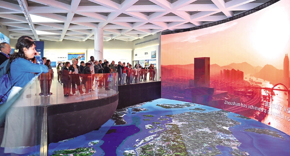 翔实的图板、巨大的沙盘、科幻的效果,清晰勾勒出舟山作为海洋经济发展示范区的战略定位与勃勃雄心。在舟山市城市展示馆,外宾们通过沉浸式体验,对舟山的发展规划、产业布局和城市魅力有了更直观的认识(见图)。