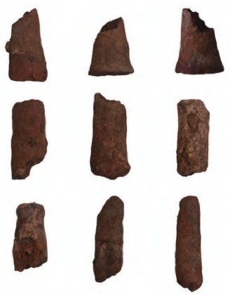 金鸡山遗址位于临城街道金鸡村,即传说中“徐城”的核心区。2024年,省文物考古研究所展开考古发掘,布设探沟1条、探方1个,发掘面积共200平方米。探方内出土烧土柱共24件(见图3),大部为圆柱形,个别呈圆锥状,质地均匀且致密,敲击有金属声。《舟山群岛地区盐业考古新进展》报告称:“总体来说,金鸡山遗址保存情况不佳……并且在更大的范围内亦无法明确遗址边界。”“倘若以烧土柱作为盐业生产的一种标志物,那金鸡山遗址的这处废弃堆积,极有可能亦与盐业生产活动有关。”