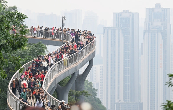 11月24日,人们在重庆半山崖线鹅岭栈桥观光。