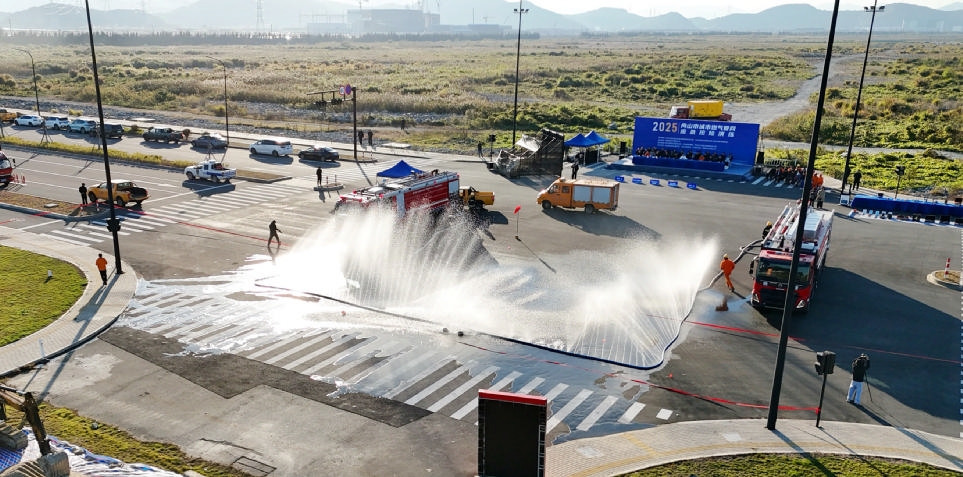 由市城市运行安全专委办、市城管局联合主办,市蓝焰燃气有限公司承办的2025年舟山市城市燃气管网应急抢险演练,昨天下午在市高新技术产业园举行。本次演练模拟中压燃气管网因第三方施工破坏引发的多场景复合型险情,围绕应急响应、应急处置、应急恢复三个科目开展演练,消防、交管、城管等相关力量参演。