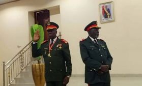 11月27日,几内亚比绍高级军官奥尔塔·因塔阿(左)在首都比绍出席就职仪式(手机照片) 新华社 发