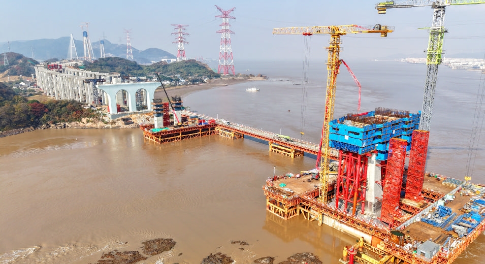 甬舟铁路3座跨海大桥全面完成主塔下塔柱施工