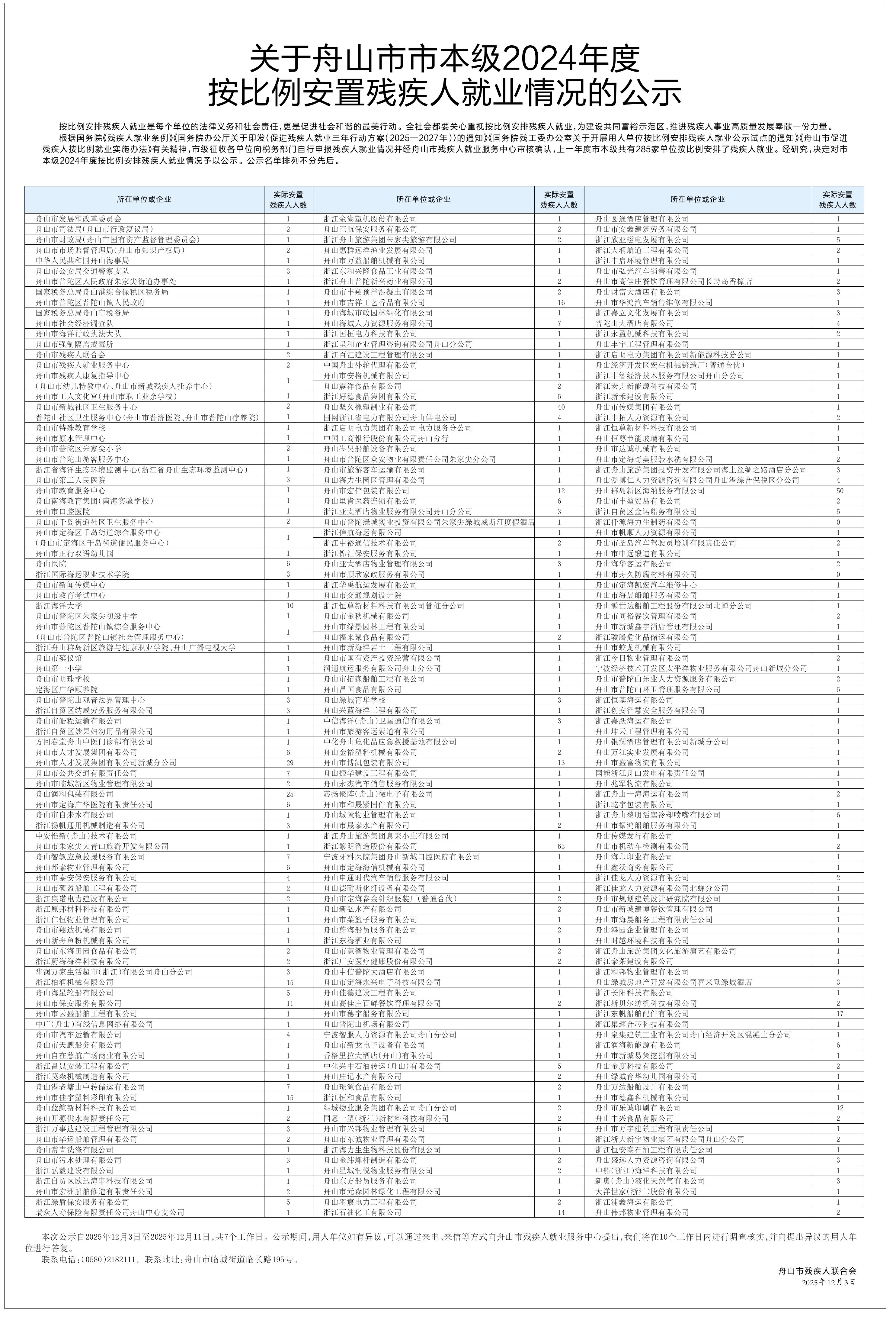 关于舟山市市本级2024年度按比例安置残疾人就业情况的公示