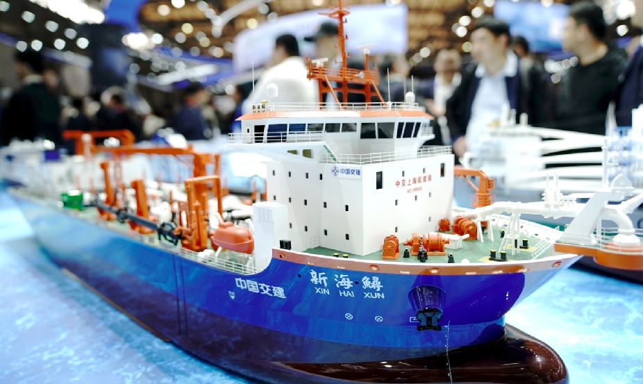 这是在中国国际海事会展上拍摄的“新海鲟”号模型(12月2日摄)。
