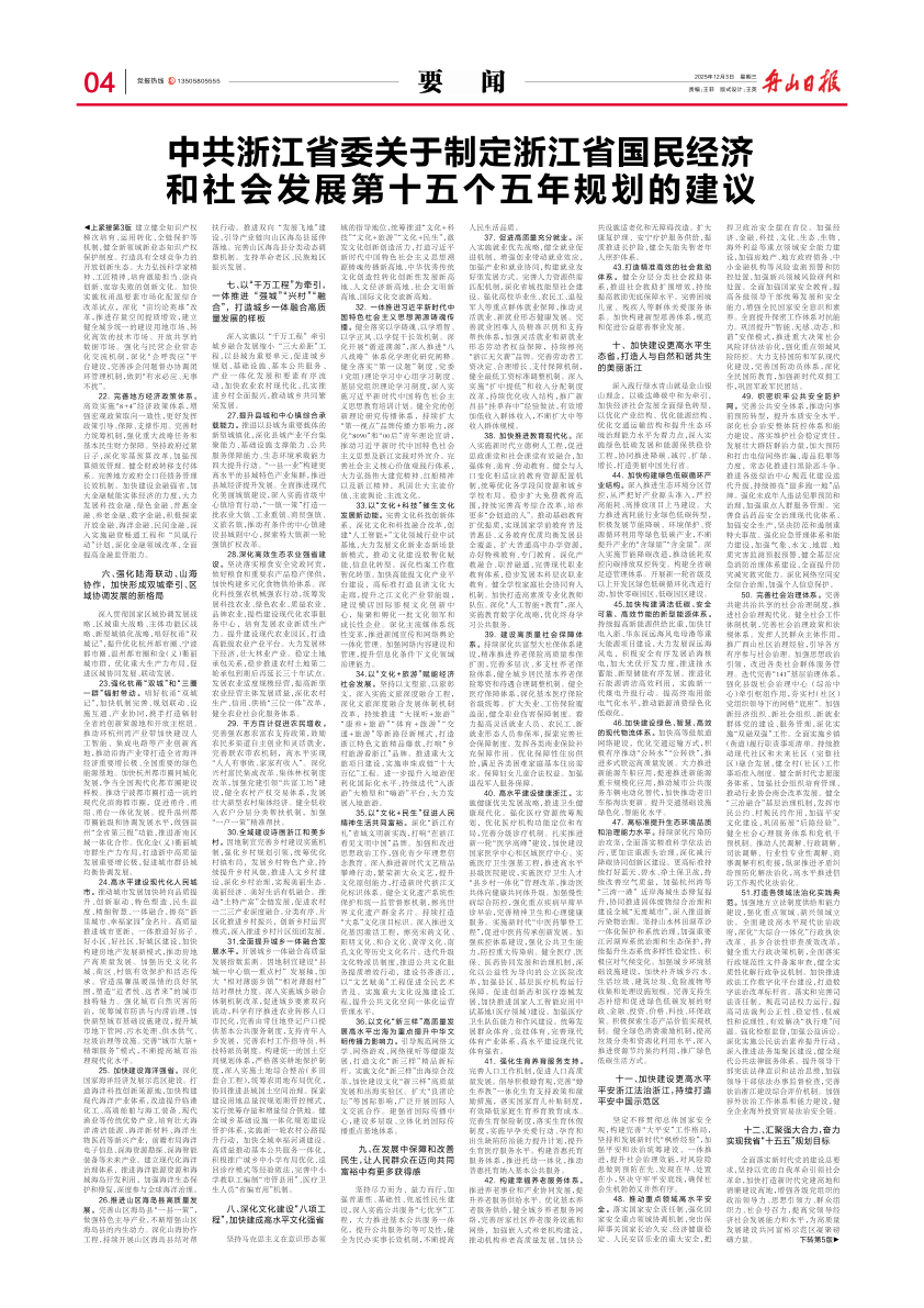 中共浙江省委关于制定浙江省国民经济和社会发展第十五个五年规划的建议