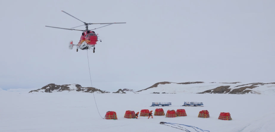北京时间12月2日傍晚,“雪鹰102”直升机从“雪龙”号甲板飞至“雪龙2”号船侧冰面作业点,开启油囊吊挂作业。近日,正在执行中国第42次南极考察任务的“雪龙”号抵达南极中山站外围陆缘冰。“雪龙2”号已于北京时间11月25日率先抵达该区域。两船正协同开展中山站区域大规模卸货作业。本次作业将累计完成约2000吨各类物资卸运。按计划,整体卸货作业将持续约15天。据“雪龙2”号轮机长李文明介绍,“雪龙2”号是首次为考察站补给燃油。