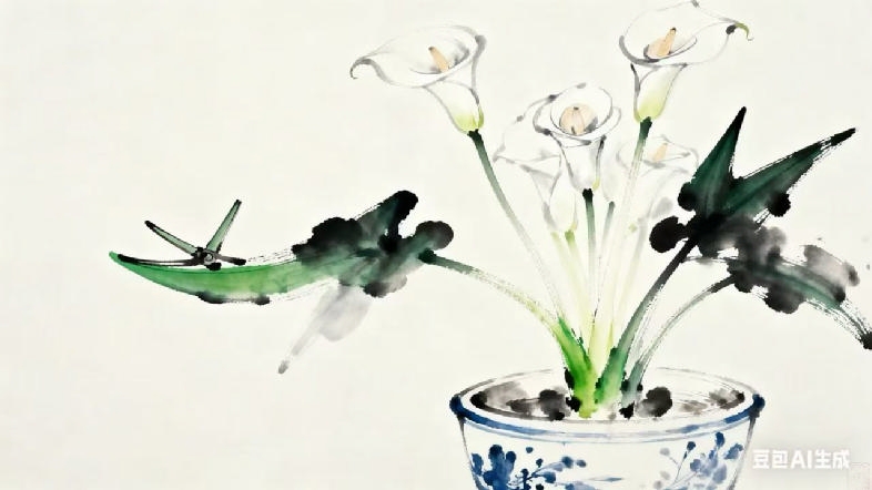 我家的庭院里有几株马蹄莲,种植在一只白色蓝纹的瓷盆里。马蹄莲的枝茎有点细长,下半部分绿油油,往上渐渐嫩白,像身材高挑的美人,亭亭玉立的样子。深绿色的叶片向外飘逸,呈箭头状,大而宽阔,犹如一艘艘绿色的小舟,轻盈地漂浮在花盆上空。其顶端分成两杈,像一把微微张开的剪刀,甚是别致。这样的叶子宛如翠绿的盾牌守护着娇嫩的梦想,为马蹄莲增添了一种优雅的氛围,让人感到尤为舒心。几枚佛焰苞犹如一座华丽的微雕作品,光滑而柔和,赋予着一种丝绸般的质感。已开的花朵呈漏斗状,由一个大而宽松的花萼包裹着花蕊。花瓣上仿佛有一层细细的绒毛,如婴儿嫩嫩的脸蛋,白得像天上的一朵白云,又若仙子的羽翼轻盈而飘逸。花蕊便如从花瓣中冒出来,像一个精巧的蛋卷。这种独特的形状使马蹄莲在花海中独树一帜。凑近花朵,一股淡淡的幽雅的清香扑鼻而至,沁人心脾。这般独特的形状、洁白的色彩和修长的花瓣,都展现了马蹄莲那淡墨清丽中所蕴含的纯洁与高贵,真可谓“素花多蒙别艳欺,此花真合在瑶池”。