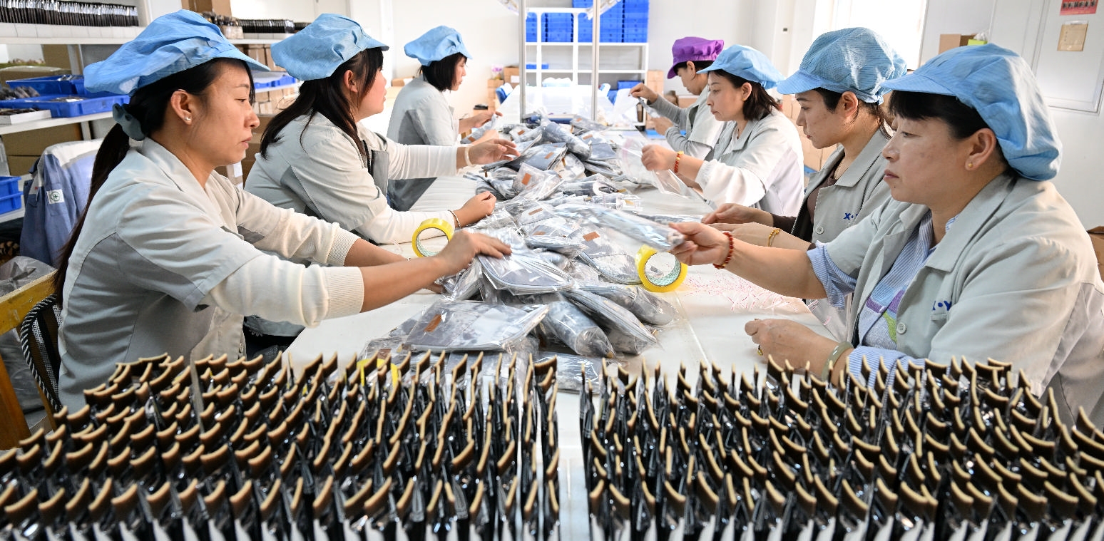 12月4日,河北省青县一家化妆刷生产企业的员工在车间内包装化妆刷。河北省青县化妆刷产业起步于20世纪90年代,经历从代工生产到自主品牌创建的发展过程。近年来,青县通过成立产业联盟、研发新材料、进驻跨境电商平台等措施,推动化妆刷产业不断提档升级,被中国轻工业联合会评为“中国化妆刷之乡”。目前,青县化妆刷企业年营业收入约30亿元。小小化妆刷,正不断“刷”亮当地县域经济发展。 新华社记者 牟宇 摄