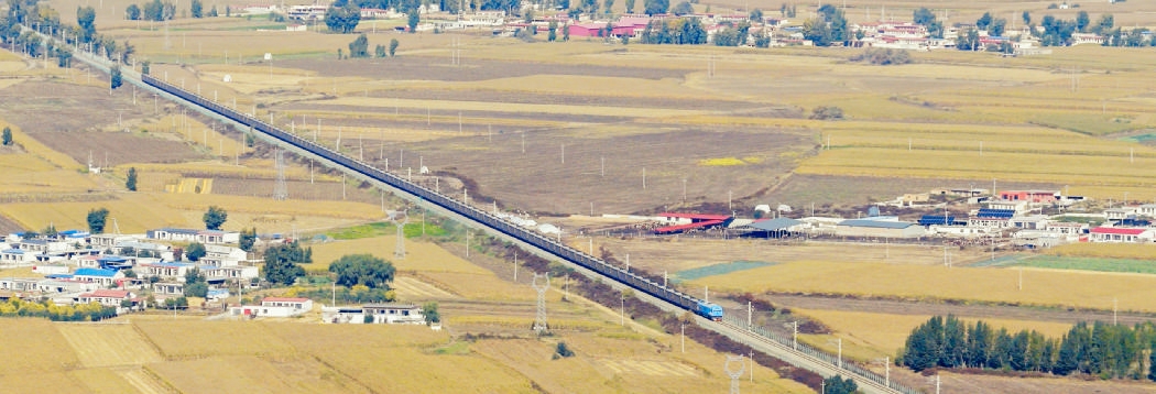 12月8日,重载群组列车在试验开行(无人机照片)。