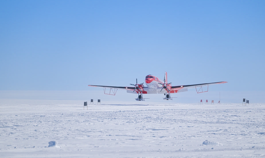 “雪鹰601”降落在南极中山冰雪机场(资料照片)。