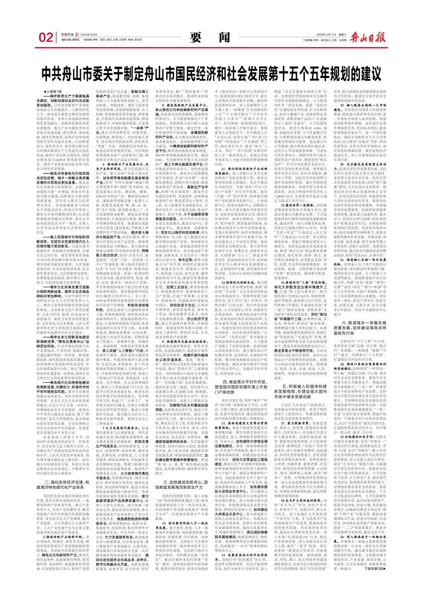 中共舟山市委关于制定舟山市国民经济和社会发展第十五个五年规划的建议