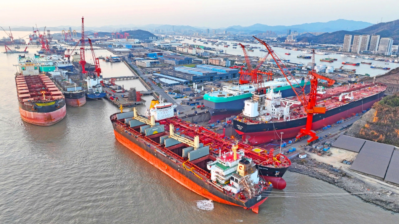 连日来,位于小干岛的万邦船舶重工(舟山)有限公司码头和船坞内,停满了正在修理的各类船舶。该公司加班加点赶修船订单,奋战“全年胜”。 摄影 记者 陈永建