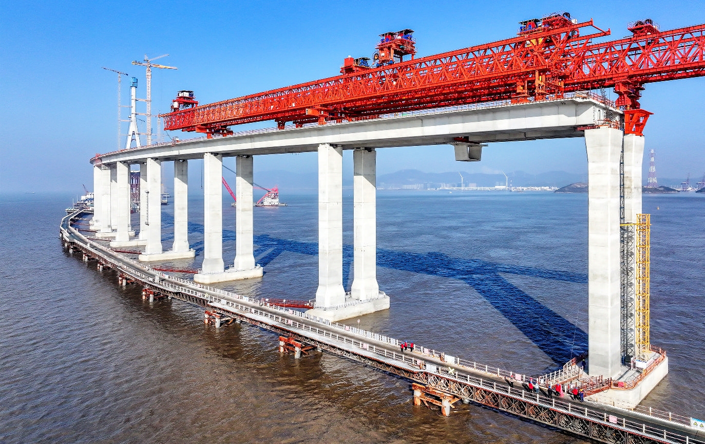 本报讯 昨天上午,随着最后一榀节段梁在架桥机的精准牵引下平稳就位,青龙门特大桥东引桥436榀节段梁全部架设完成(见图),标志着大桥主体结构施工取得阶段性突破,为宁波舟山港六横公路大桥后续桥面系施工及全线贯通奠定坚实基础。