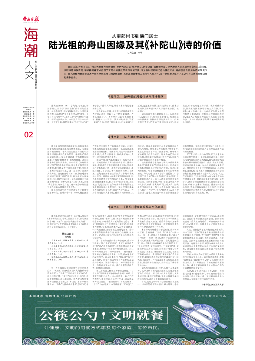 陆光祖的舟山因缘及其《补陀山》诗的价值
