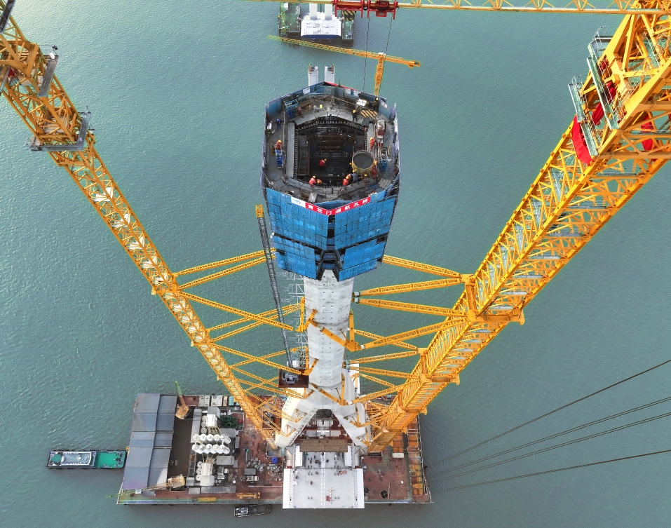 面对主塔毫米级精准控制、海上超高结构施工与复杂海况作业等多重挑战,项目建设团队中国铁建大桥局和中国铁建港航局通过产学研深度融合,实现多项技术首创。