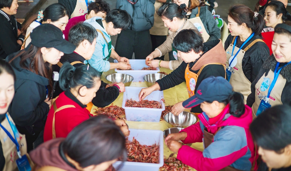 嵊泗县渔俗渔技大比武活动于12月22日在嵊山镇举行。渔嫂们在剥虾、剖鳗、敲螺、织渔网等4个传统渔技项目展开比拼。刀起锤落、指尖翻飞间,参赛选手的娴熟技能引来观众喝彩。