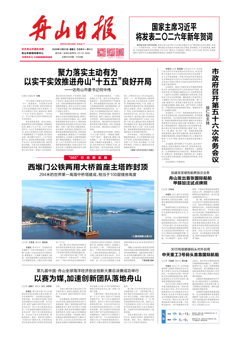 以实干实效推进舟山“十五五”良好开局