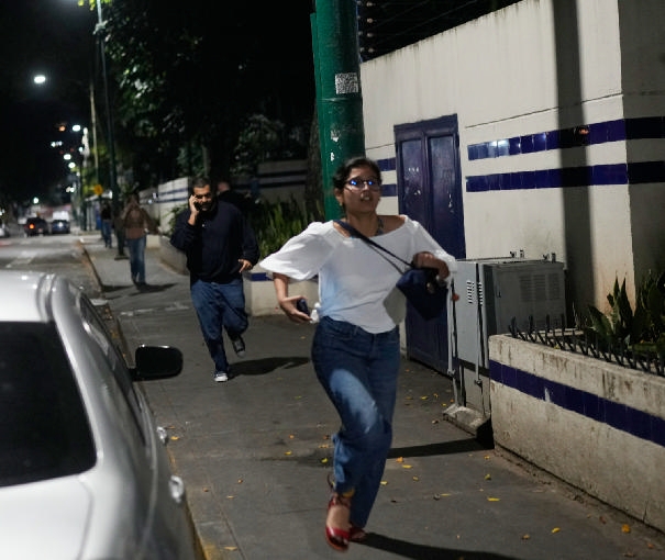 1月3日,在委内瑞拉首都加拉加斯,人们听到爆炸声后在街道上奔跑 新华社/美联