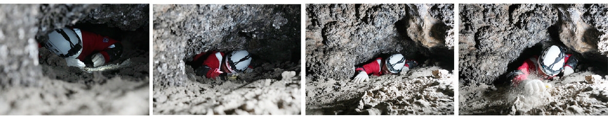 2025年12月,航天员开展洞穴训练艰难爬过狭窄管洞(拼版照片) 新华社 发