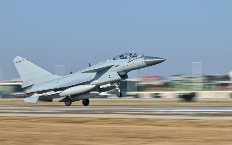 1月5日,东部战区空军航空兵某部组织实战化飞行训练,飞行员驾驶战机加力起飞。