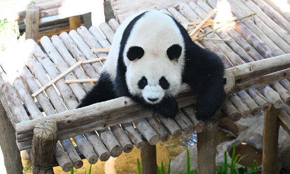 大熊猫“辰星”“晓月”10日在马来西亚国家动物园大熊猫保护中心正式与马来西亚公众见面。两只憨态可掬的大熊猫吸引众多民众前来参观,现场气氛热烈。