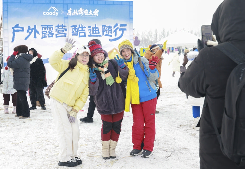 1月12日,在第四届东北露营大会现场,游客们在打卡拍照。