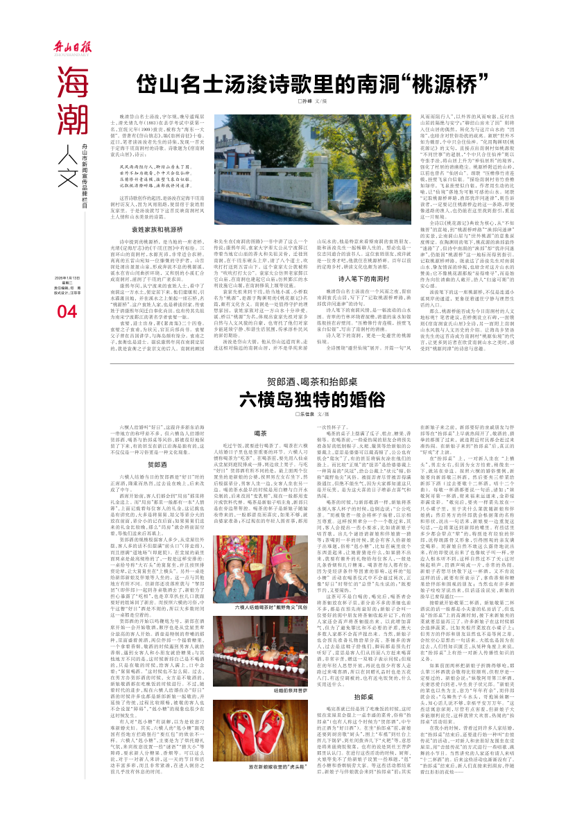 岱山名士汤浚诗歌里的南洞“桃源桥”